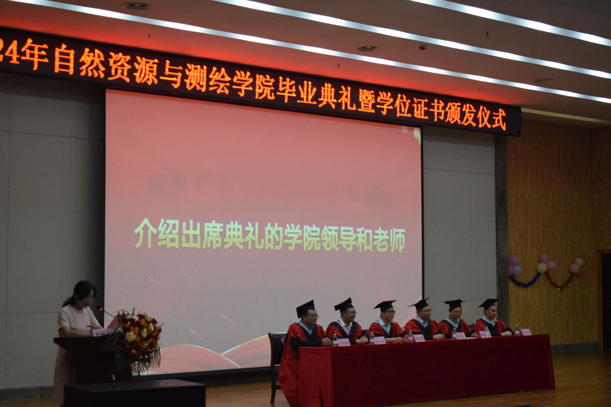 在图书馆报告厅举行2024年毕业生毕业典礼暨毕业证书颁发仪式。学院领导黎先、陆汝成、莫雅兰、杨小雄,学院学位评定委员会委员、各系负责人,教师代表、家长代表及2024届全体毕业生参加毕业典礼。典礼由学院党委副书记、纪委书记莫雅兰主持。