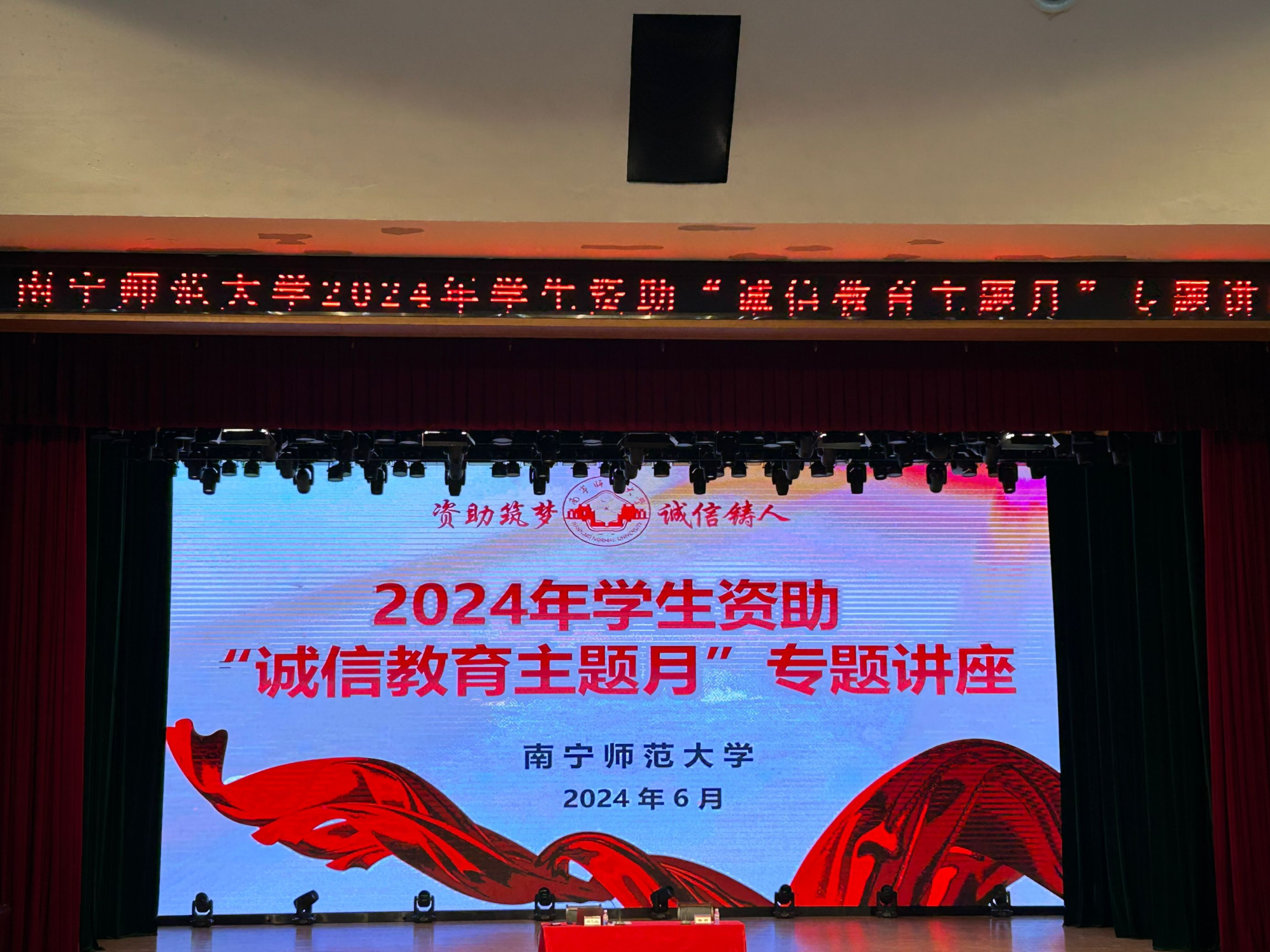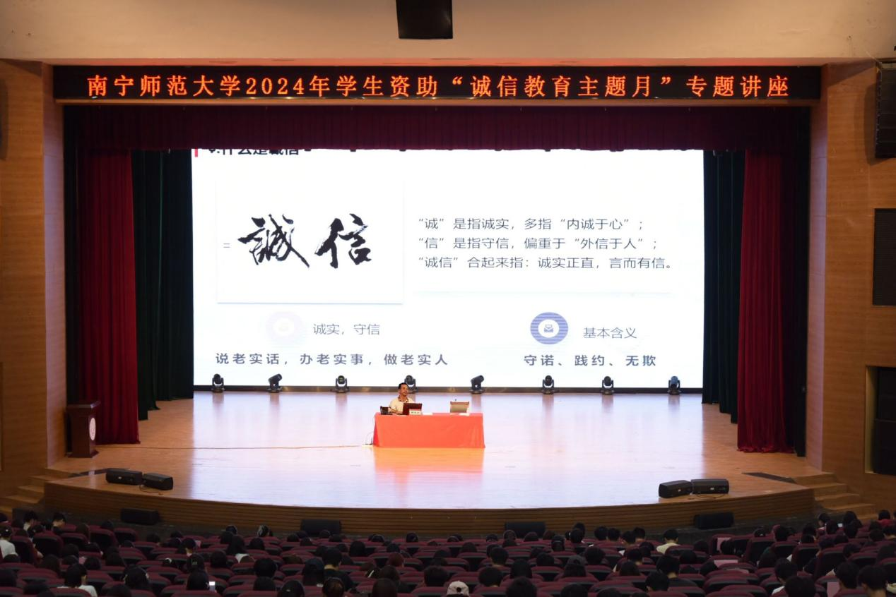 在武鸣校区音舞楼一号报告厅举办2024年学生资助“诚信教育主题月”专题讲座。本次讲座特邀美剧天堂