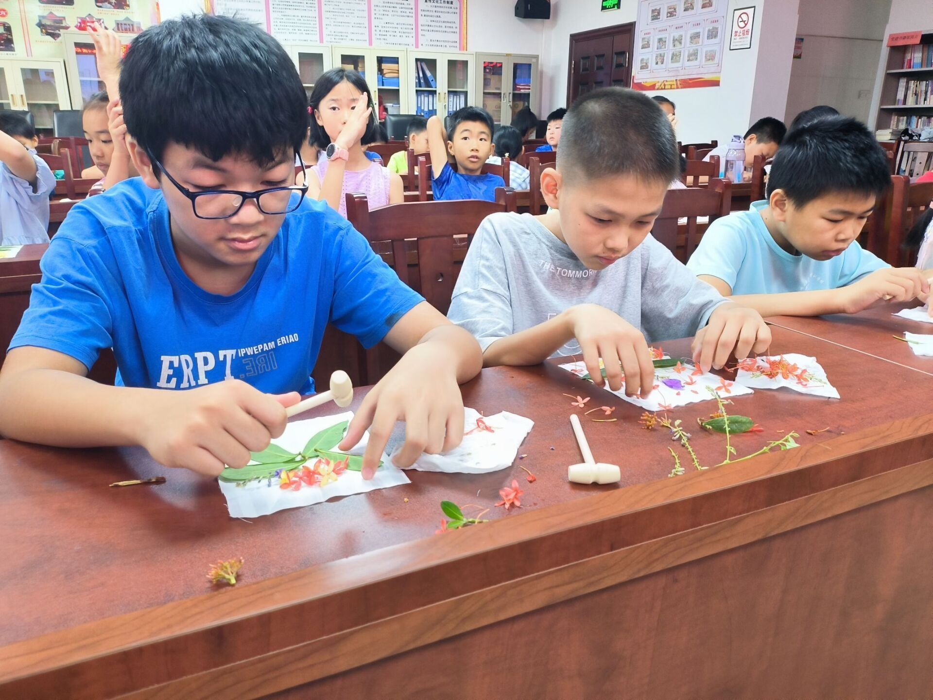 活动伊始,志愿者们以贴近日常生活的防溺水安全教育开展趣味科普课程。在此课程中,志愿者以活泼生动的形式,向小朋友们传授了夏季游泳的相关安全知识,有效地提升了他们的安全意识和自我保护能力。随后,志愿者们与小朋友们一起学习甲骨文等形象文字,共同探索中华古老文字的奥秘。最后的植物拓印画创作则是一场与自然的亲密对话。小朋友们收集各式各样的植物叶片,运用创意与技巧,将大自然的色彩与形态巧妙融合于画布之上,创作出了一幅幅独一无二的植物拓印画。