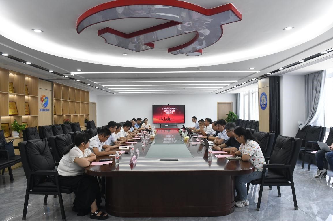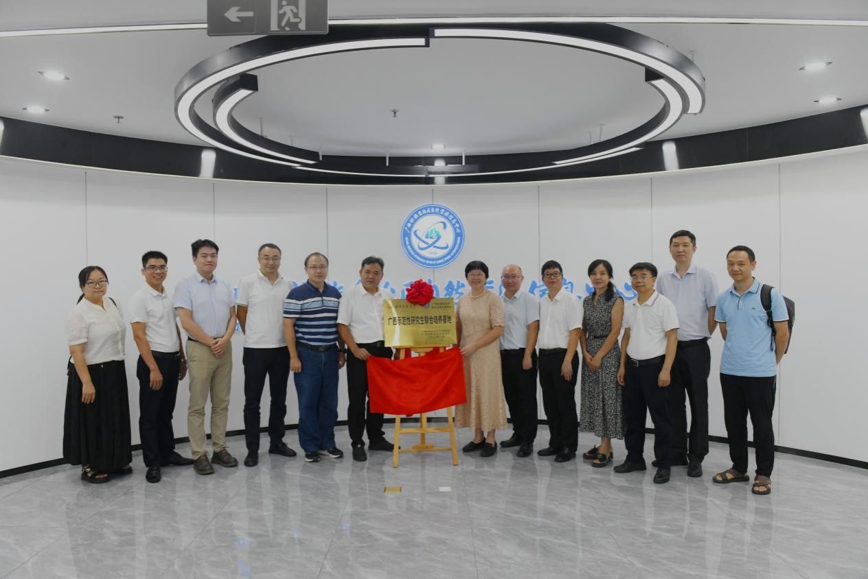 最后,双方共同广西示范性研究生联合培养基地举行揭牌、合影留念。仪式结束后,与会人员还参观了广西自然资源信息中心的开放实验室、智能机房,各方围绕人工智能在自然资源的应用、创新人才培养等方面进行了深入交流,就研究生联合培养基地达成了进一步合作意向。