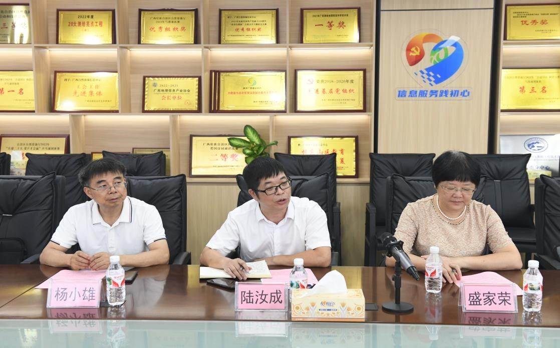 会上,陆汝成院长表示,通过广西示范性研究生联合培养基地的建设,着力从培养创新创业能力、建设“双师型”导师团队、规范基地管理和运行、构建产学研结合的长效机制等方面高质量建设研究生联合培养基地,力争产出一批新的基地建设代表性成果。同时,双方可以共同申报重点研发计划项目、国家自然科学基金项目等,挖掘中国东盟自然资源的大数据,共建中国—东盟自然资源智能化治理研究中心。最后,期待通过此次的广西示范性研究生联合培养基地挂牌仪式,期望双方能在协同育人、产教融合、实习就业、项目合作、科技攻关等方面进一步深度合作。