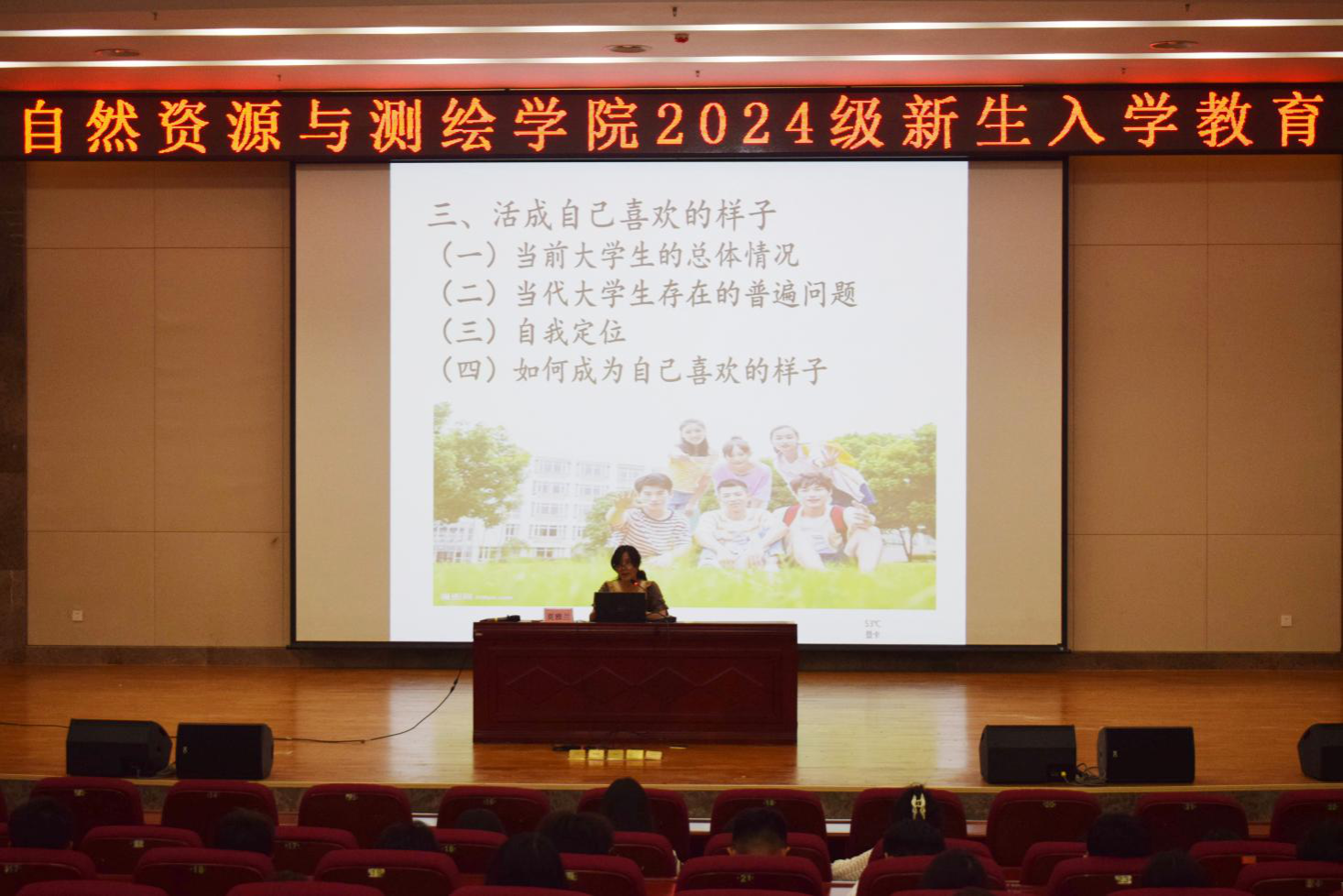 为帮助新生们更好地融入大学生活,了解专业方向,确保每位新生都能感受到来自学院大家庭的温暖与关怀,自然资源与测绘学院于2024年9月25日在图书馆报告大厅举办2024级新生入学教育会议。本次活动由学院党委副书记莫雅兰老师主讲,全体2024级新生参与此次会议。