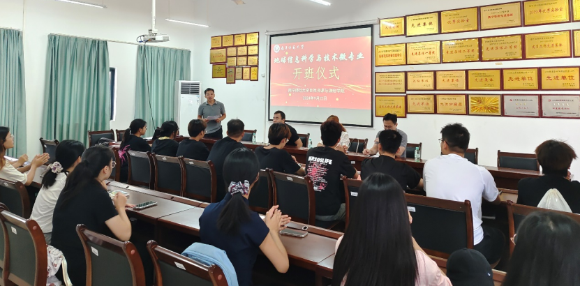 微专业建设的支持,对微专业班的同学们表示欢迎。他鼓励同学们学好地球信息科学与技术微专业,为我们认识地球、保护地球、利用地球自然资源提供强大的工具。通过专业学习,同学们掌握先进技术和方法,为未来工作、科学研究奠定基础。并期待同学们勇于不断地探索、敢于质疑、不断拓宽自己的视野,将来为国家、为广西的自然资源开发利用和生态文明建设做出新的贡献。