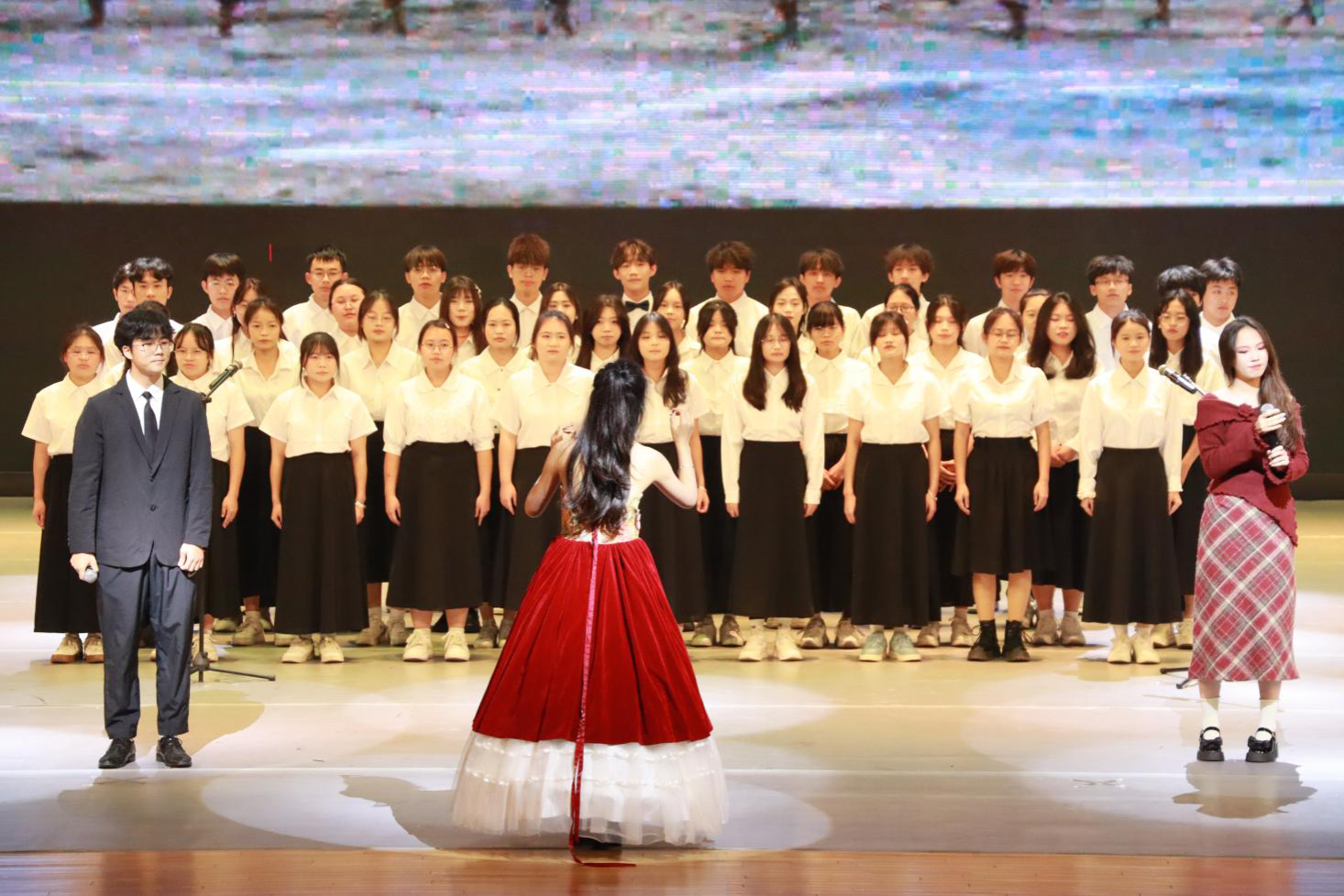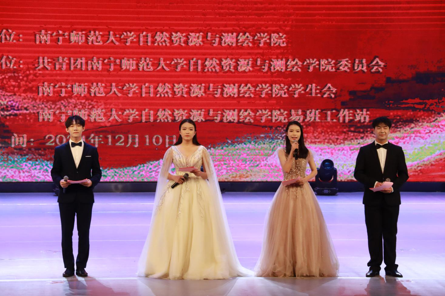在武鸣校区音乐与舞蹈学院一号演播厅举办了“十载院庆展新才,齐心共创艺未来”新生才艺大赛。学院院长陆汝成、党委副书记莫雅兰、团委书记张慧荣等学院领导、老师出席了晚会,各二级学院的学生代表以及学院各班学生代表观看了晚会。