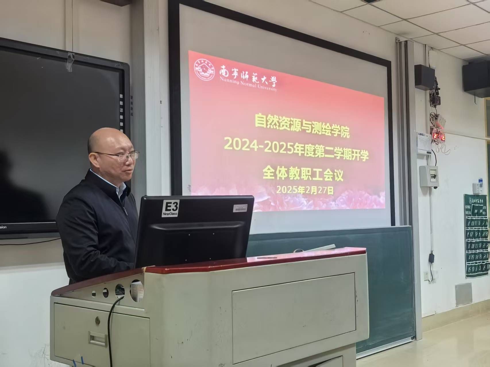 在明秀校区文星楼306室召开2025年春季学期第一次全体教职工大会。学院领导班子成员和全体教职工参加会议。