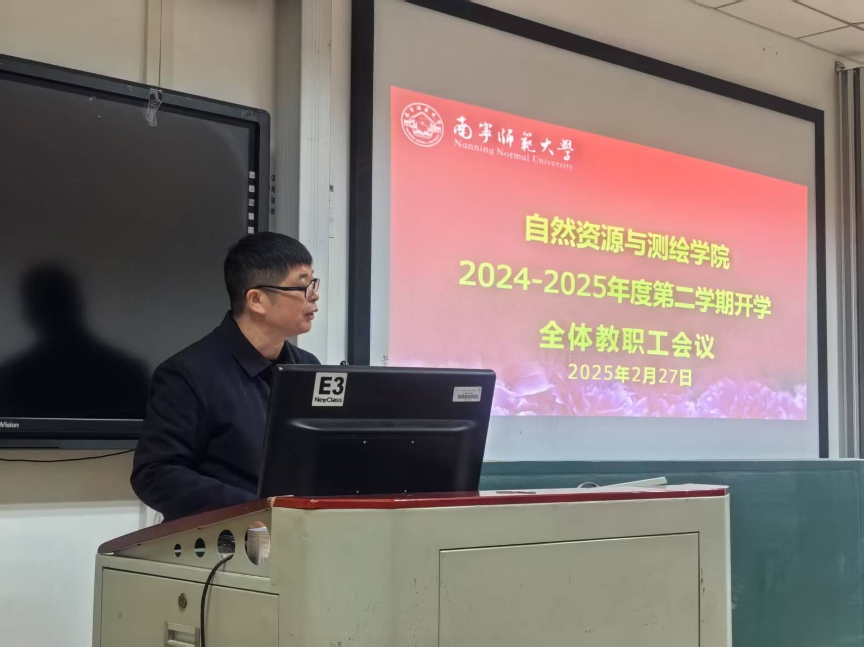 会上,学院党委副书记、院长陆汝成同志对新学期的工作提出了明确要求。他指出,过去一年,在学校党委行政的坚强领导下,在各部门各学院的大力支持下,学院牢记嘱托、砥砺奋进,鲜明特色应用创新型学院建设上新征程,以实际行动深刻领悟“两个确立”的决定性意义,坚决做到“两个维护”,推动学院各项工作取得新进步,各项工作有了新成效。他强调,2025年是落实教育强国规划纲要的关键之年,也是“十四五”收官之年和“十五五”谋划之年,也是学校和学院全面深化改革、推进高质量发展的关键一年,学院将积极响应国家“人工智能+教育”战略部署,以人工智能技术应用为突破口,着力抓好人工智能赋能学院高质量发展顶层设计,助推形成“AI+自然资源”特色发展路径;全力推动人工智能驱动教育教学改革,促进人工智能与专业教育教学深度融合;积极推进智能化教学科研平台建设,与AI企业共同开发“AI虚拟自然资源教学系统”、共建“AI+自然资源”实训基地与联合实验室;聚焦自然资源与测绘智能化与人工智能科技服务创新,推动人工智能赋能科技创新和社会服务;用心抓实数智化能力提升的师资队伍建设,做到教师人人会用AI,人人熟用AI目标;善用AI助力学生智能化管理,维护学生成长成才,全面提升服务区域文化发展和学校美育建设水平,推动学院各项事业高质量发展。