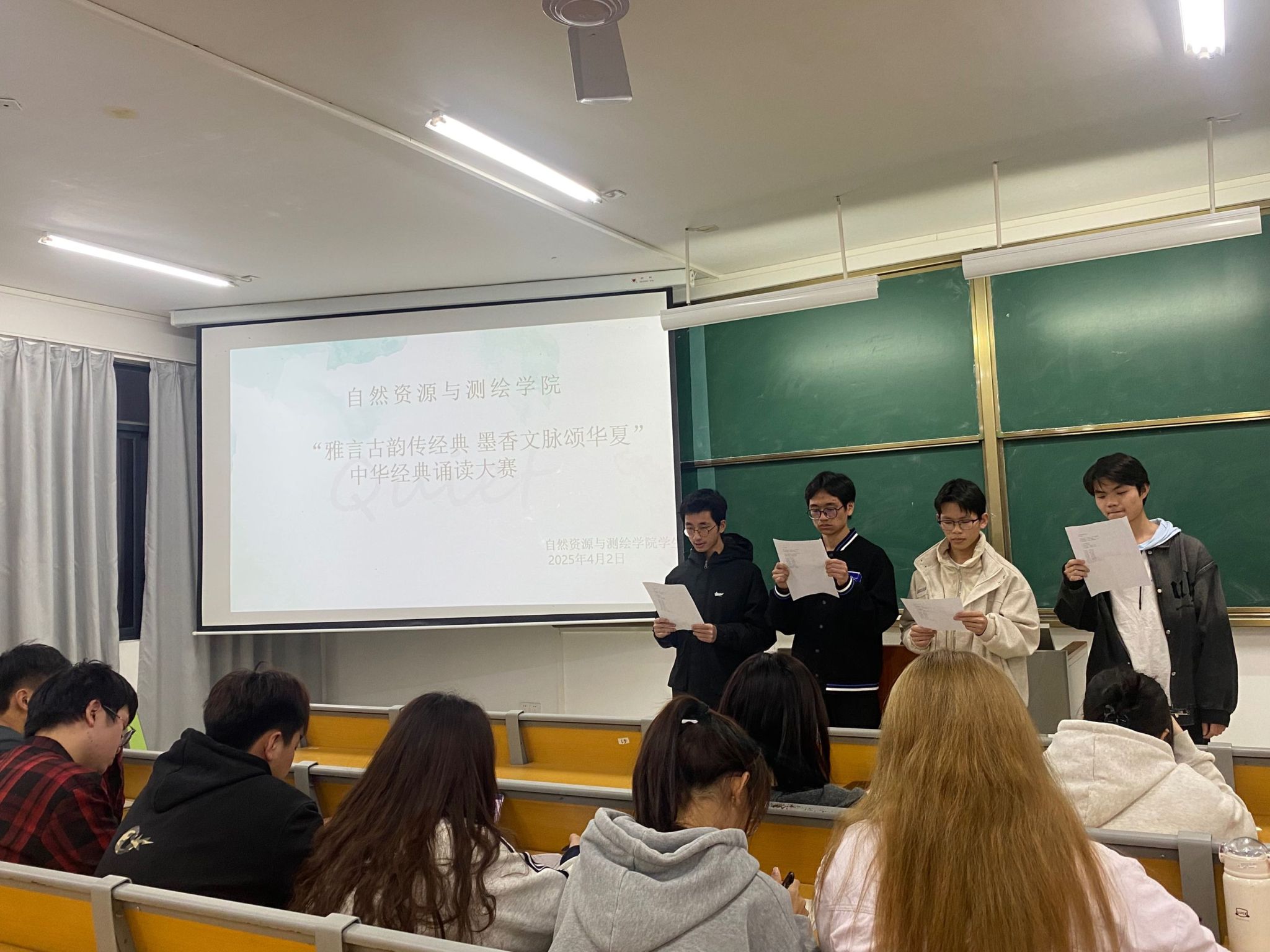 学风建设系列活动之一的“雅言古韵传经典 墨香文脉颂华夏”中华经典诵读大赛在实验2-A201举行。学院2023级、2024级约60名学生的积极参加此次活动。