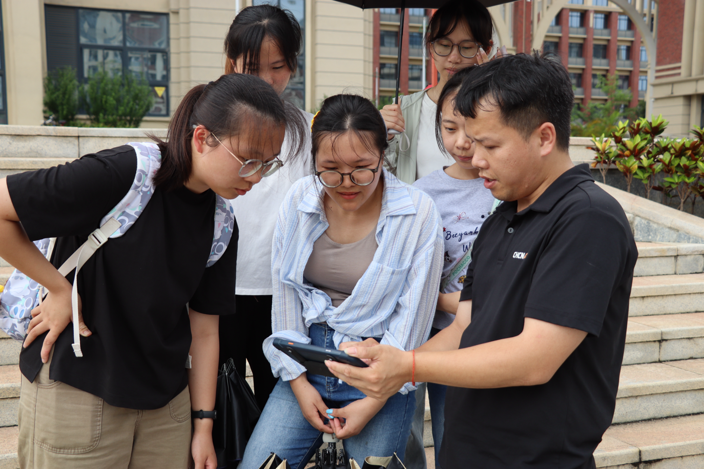 活动伊始,段副院长热情欢迎华测团队的到来,介绍学院办学情况。他指出,学院一直以来秉持“开放办学,协同创新”的理念,此次与华测导航的合作是学院深化产教融合的重要举措。希望同学们保持“空杯心态”,沉浸式投入课堂;践行知行合一理念,将课堂知识与国土三调,生态修复等项目结合;勇当技术先锋,关注行业科技发展动态,探索GIS与遥感,大数据的交叉创新。华测导航的专业讲师在教室进行宣讲。讲师借助精彩的PPT,详细介绍了公司在智能测绘领域的技术成果、创新应用,还分享行业发展趋势,拓宽了同学们的专业视野。华测导航构建了极具竞争力的薪酬福利体系,不仅提供行业领先的薪资待遇,还给予全方位员工关怀;同时,打造了完善的人才培养体系,包含系统性入职培训、导师带教、专家顾问指导等多元化培养方式。室内宣讲结束后,活动转至实验楼外湖边进行户外实操演示。华测导航技术人员向与会学生展示了先进的测绘无人机等设备,细致讲解设备原理、操作要点,并现场操作示范,解答学生现场提问。部分学生在技术人员指导下,亲自上手操作无人机,体验智能测绘的魅力。