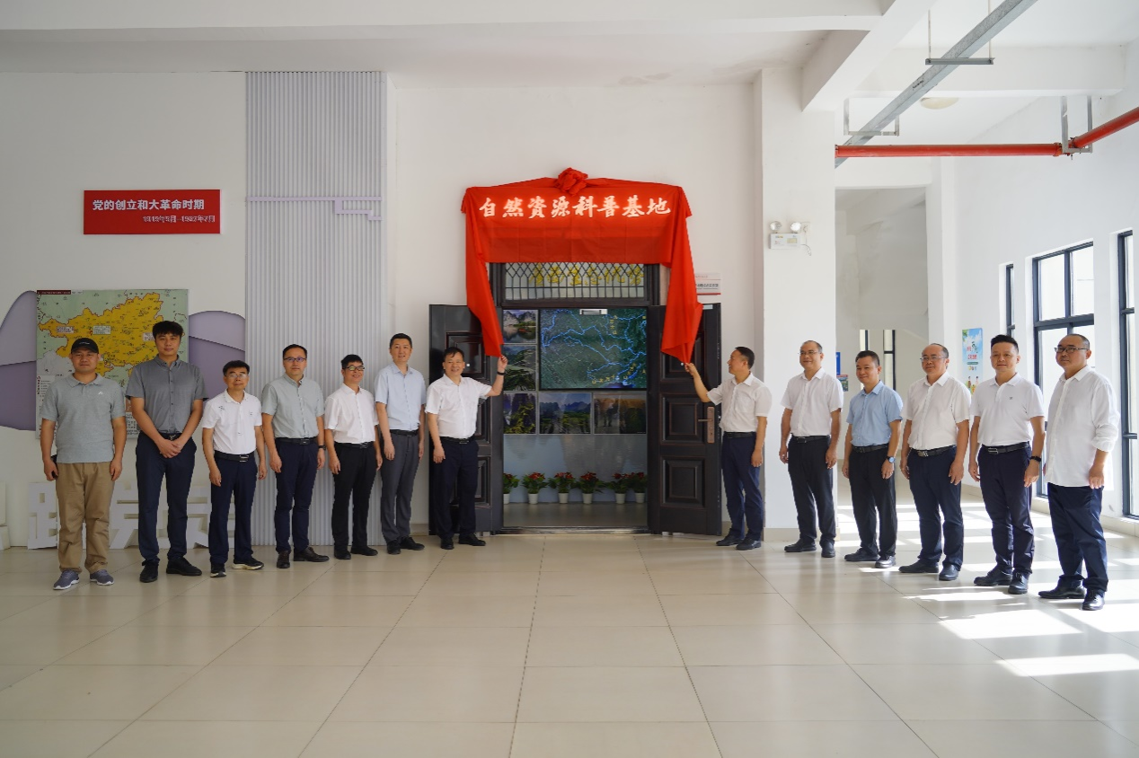 领导班子在学校武鸣校区地源楼共同为自然资源科普基地揭牌。