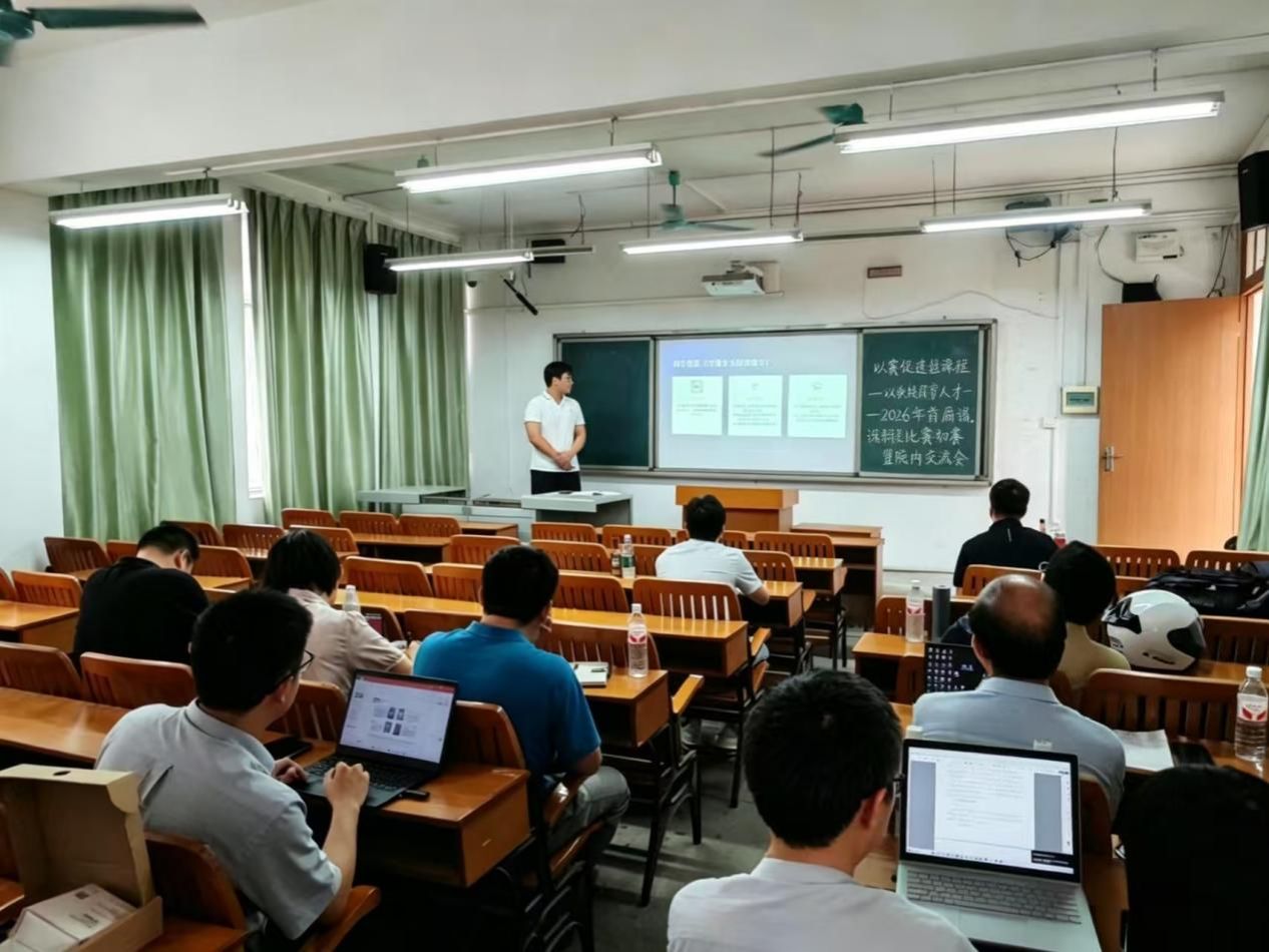 2026年首届说课程比赛初赛暨院内教学交流会在明秀校区思远楼教205顺利举行。学院副院长段炼,土地资源管理系周兴教授、吴壮金副教授,房地产开发与管理系娄信强主任及校级教学督导肖智副教授担任点评专家,部分教师参加了现场观摩。