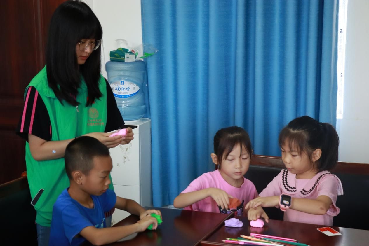 民族团结教育课上,志愿者围绕“中华民族一家亲”,播放各民族文化习俗动画短片,穿插提问引导思考。孩子们踊跃作答,在互动中加深对各民族的了解。超轻粘土环节,孩子们自由创作民族特色建筑、各色服饰的人物,在动手间感受民族文化多样性。数字抱团算数活动中,志愿者以加减法出题,孩子们按结果快速抱团。孩子们在奔跑中计算、组队,欢声笑语中提升运算能力与协作意识。活动尾声,志愿者分发三下乡活动期间的礼物。团队负责人寄语:希望孩子们保持纯真与热情,勇敢追求梦想,成长为有担当、有爱心的人,用行动温暖身边人。
