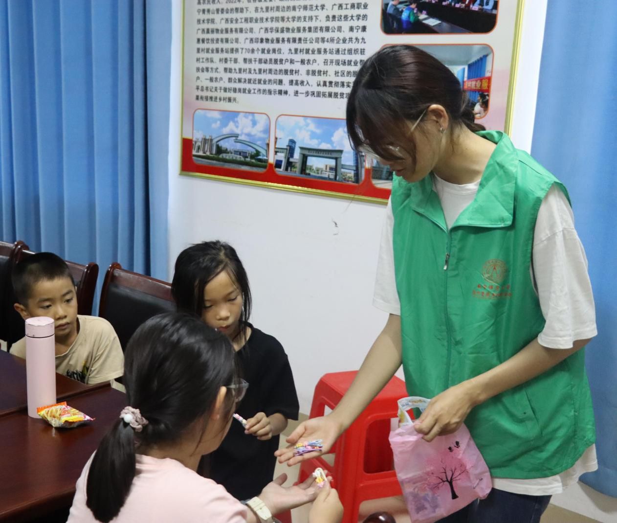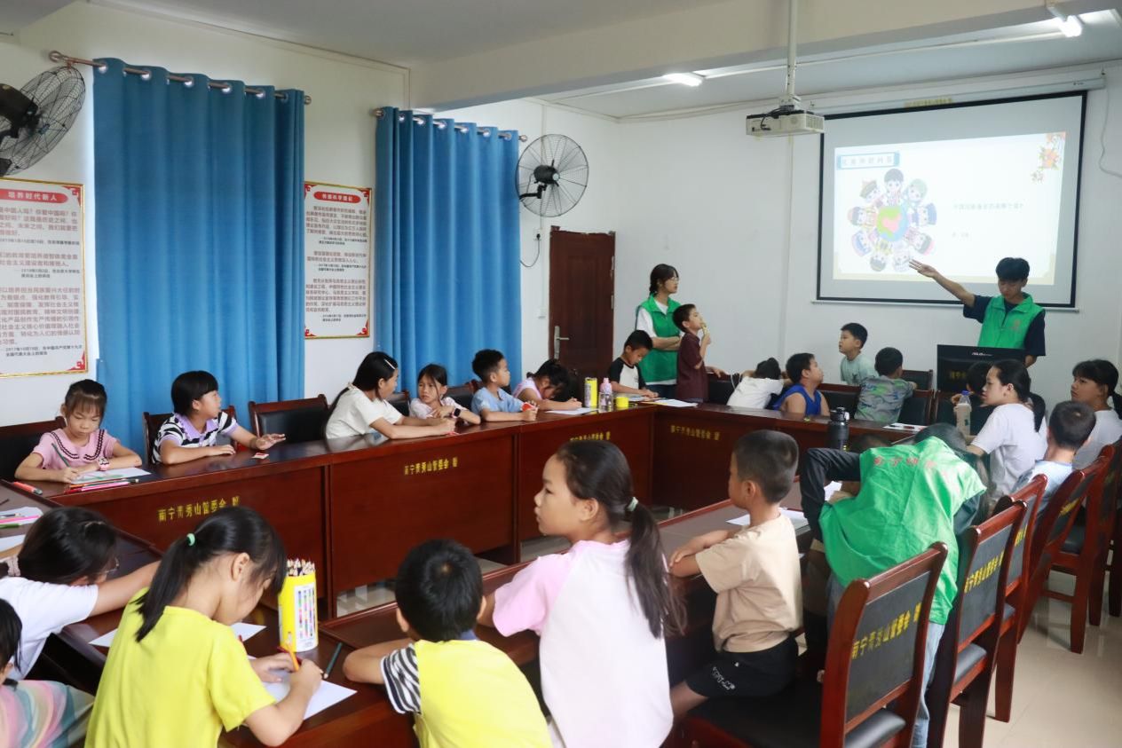 志愿者团队在九里村村委会开展民族团结主题“三下乡”活动,以多样互动形式,为村内以汉族为主的少年儿童播撒民族团结种子。