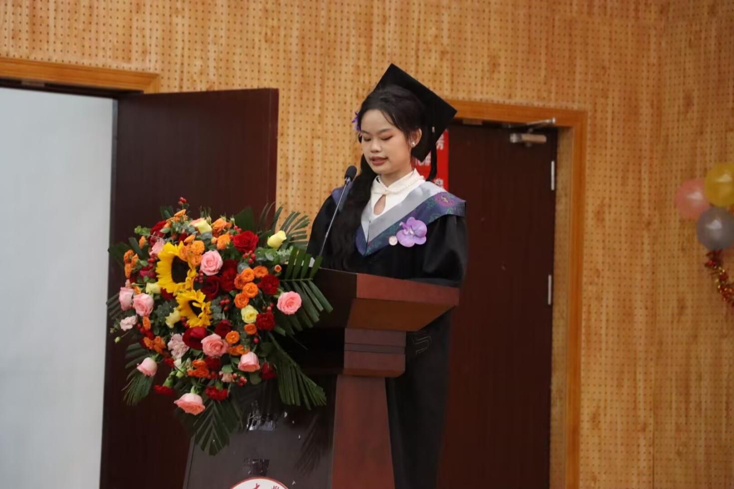 优秀教师代表陆一敢老师在发言中叮嘱毕业生不忘初心、心存善念、常怀感恩,践行校训精神,书写精彩人生。优秀毕业生代表何小青同学则深情回顾了大学时光,感恩母校、师长、父母与同窗,并表示将踔厉奋发,贡献青春力量。