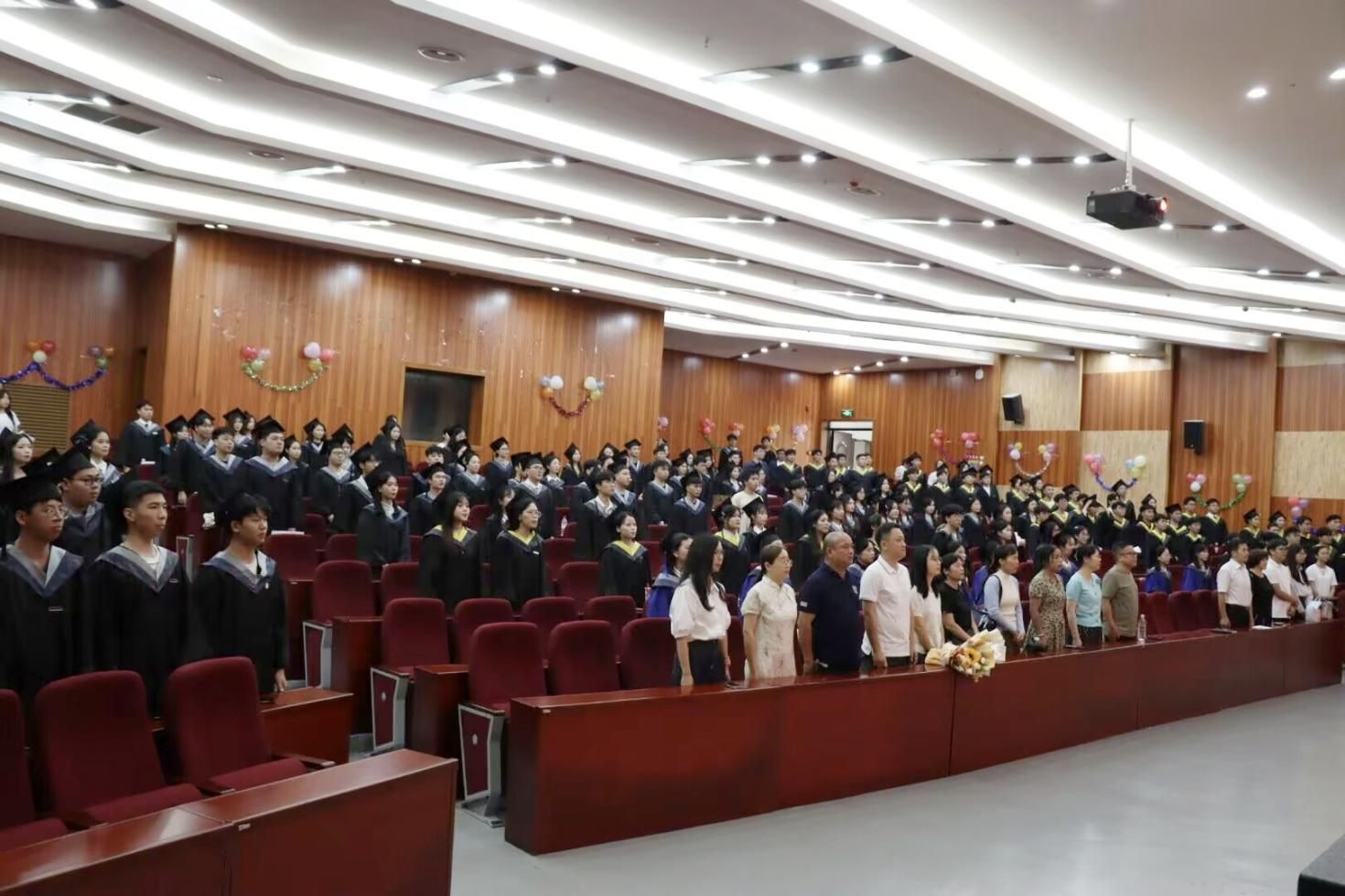 典礼期间,播放了温馨的2025届毕业生纪念短片,共同回顾了青春足迹。最后,全体同学齐唱《仰望星空》、《再见》,歌声中满是师生间的不舍与对毕业生的美好祝福。