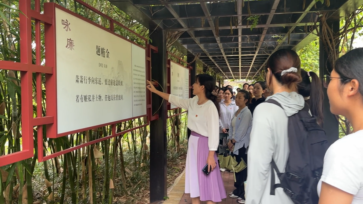 学生党员在学院纪委书记莫雅兰、学院党委组织员彭定新的带领下到武鸣校区“清风竹苑廉洁文化园”开展了一场主题鲜明、内容深刻的廉洁文化教育实践活动。