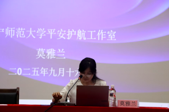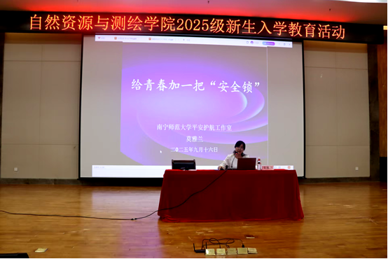在图书馆报告厅成功举办新生安全教育专题讲座。本次讲座由学院党委副书记莫雅兰担任主讲,学院全体2025级新生参与讲座。