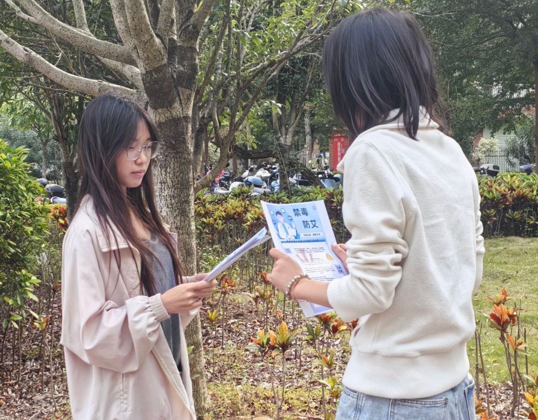活动现场气氛热烈,同学们参与热情高涨。志愿者们通过发传单的形式,向校园内的同学们普及禁毒防艾知识。传单中详解说明了毒品的危害与艾滋病的传播途径,并给出针对性预防措施,引发同学们的广泛关注。此外,学院还组织志愿者深入班级开展宣讲,并配套设置互动体验环节,让同学们在沉浸式参与中深化理解,切实掌握拒毒防艾实用方法。