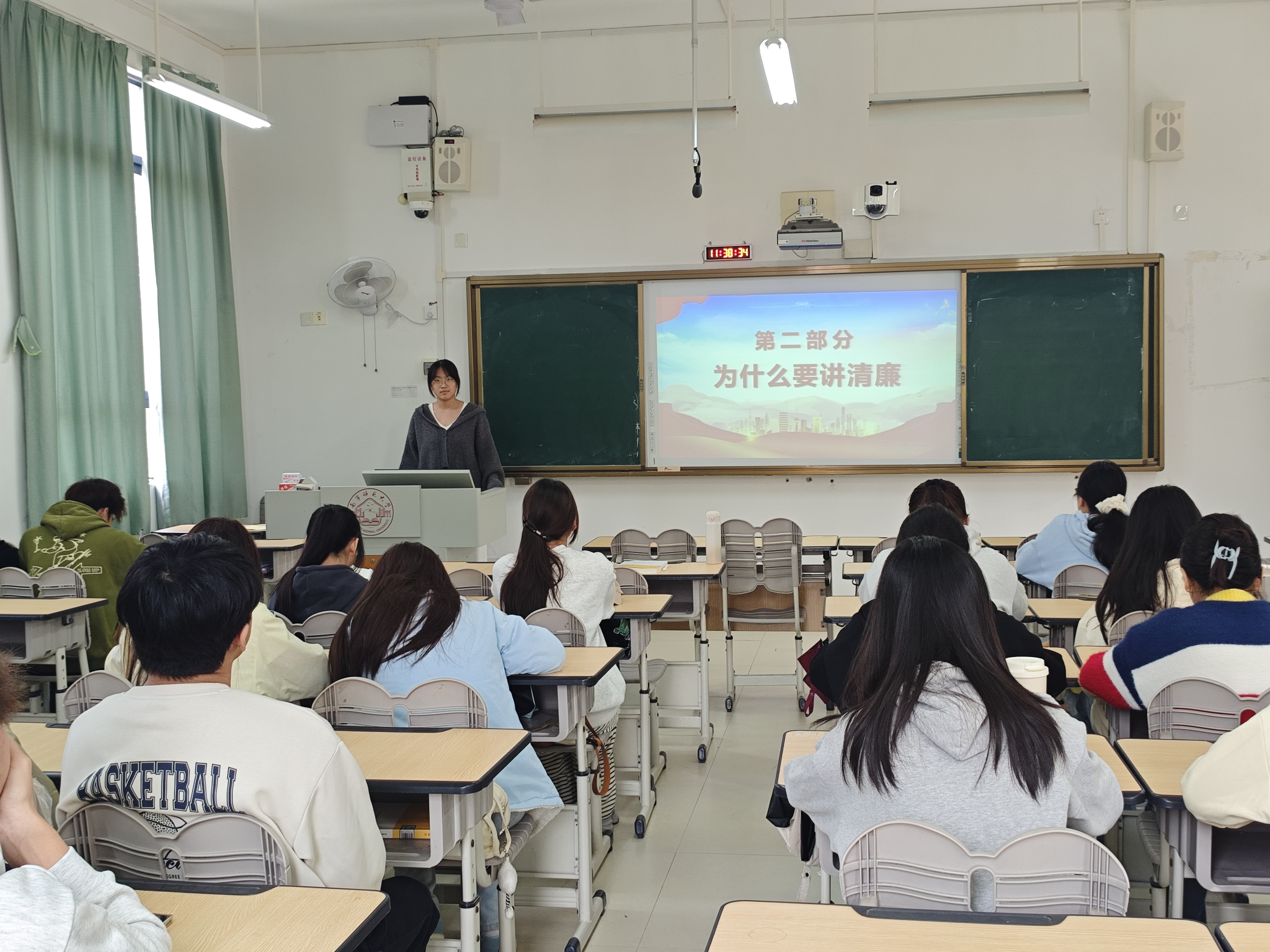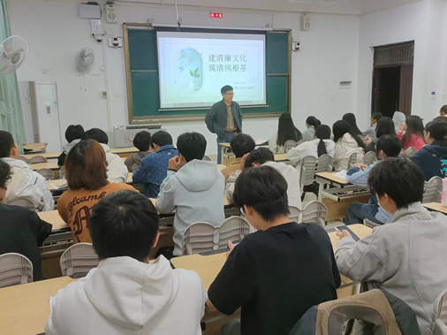 自测24房管班于11月6日以“清廉伴我行,清风润校园”为主题,从“清”“廉”“正直”“诚信”四个维度阐释清廉意义,结合个人、校园、社会三个层面,强调清廉行为的现实意义,引导学生从作业独立、考试诚信等细节做起,做到洁身自好、明辨是非。