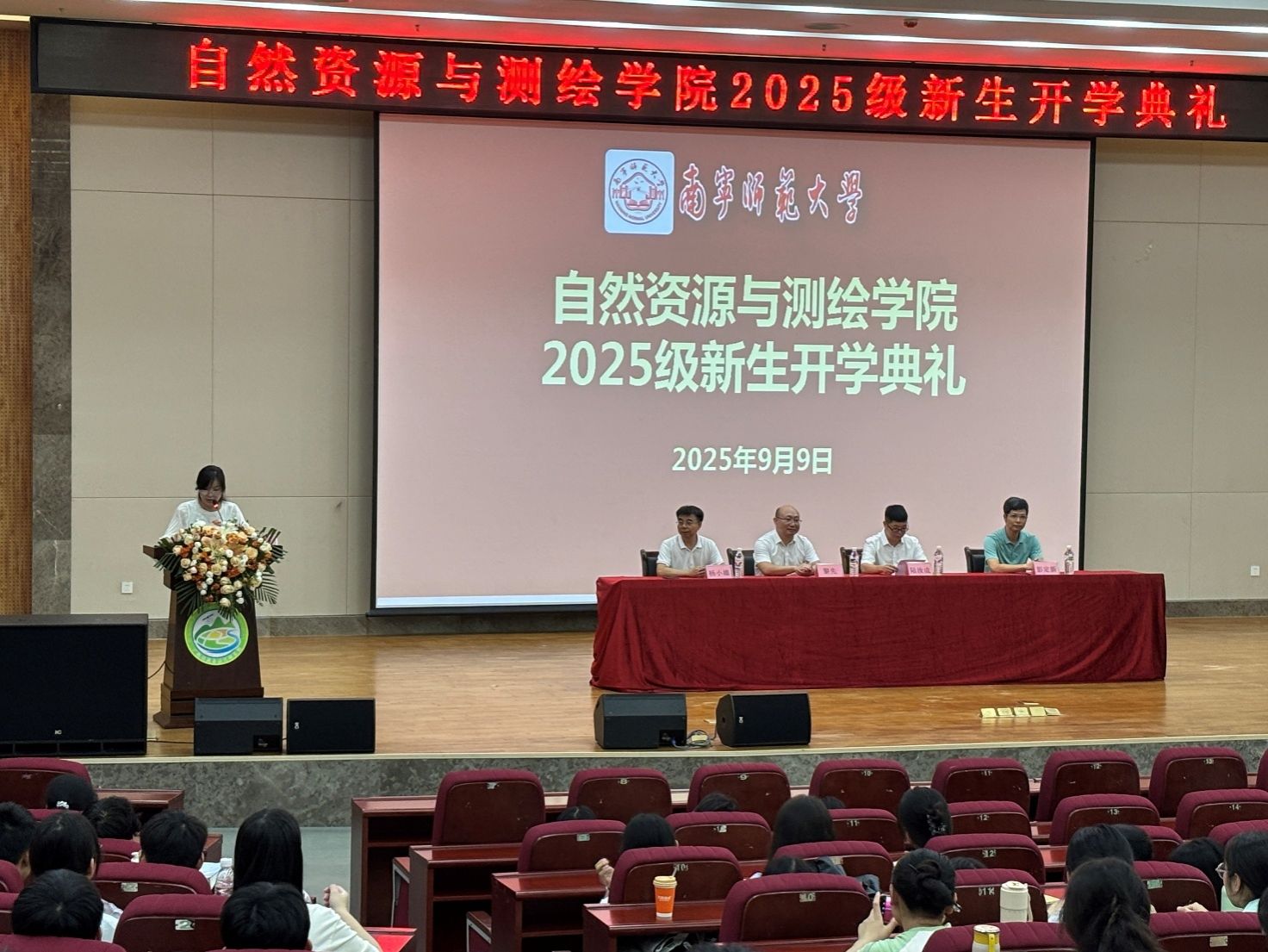 2025级新生开学典礼于图书馆报告厅举行,学院党委书记黎先,院长陆汝成,党委副书记莫雅兰 ,副院长杨小雄,段炼及各系主任,班主任和教师代表共同出席。开学典礼由党委副书记莫雅兰主持。